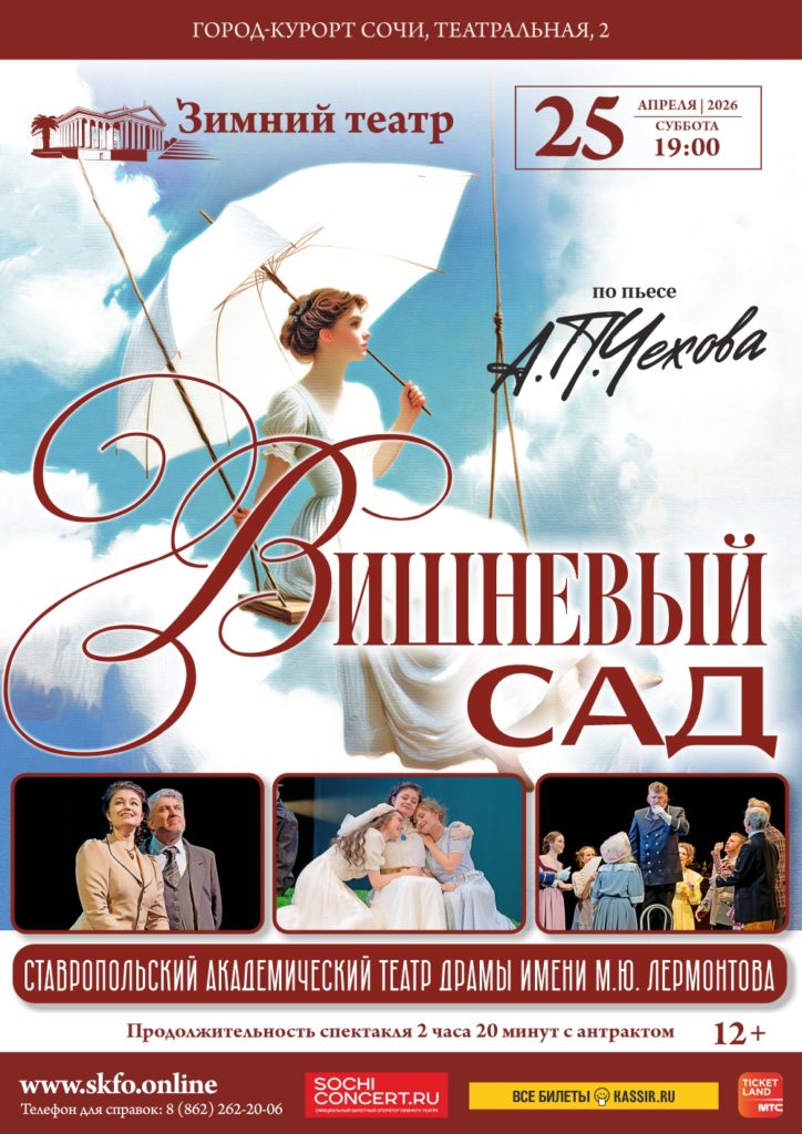 Спектакль был создан по пьесе великого русского классика — Антона Павловича Чехова. «Вишнёвый сад» — это трепетная и смешная притча о смене эпох, где личная драма каждого героя переплетается с историей всей страны. Это спектакль о том, как сложно отпустить уходящее и решиться на перемены. О том, что за любым социальным конфликтом скрываются личные истории, поиск себя и хрупкая надежда на любовь. Завораживающая игра актеров, что умело касается всех струн души зрителя, не оставит никого равнодушным к этому спектаклю!